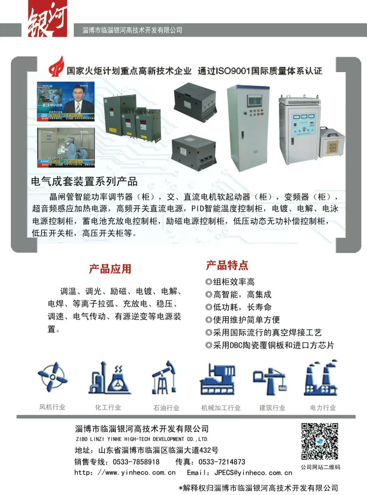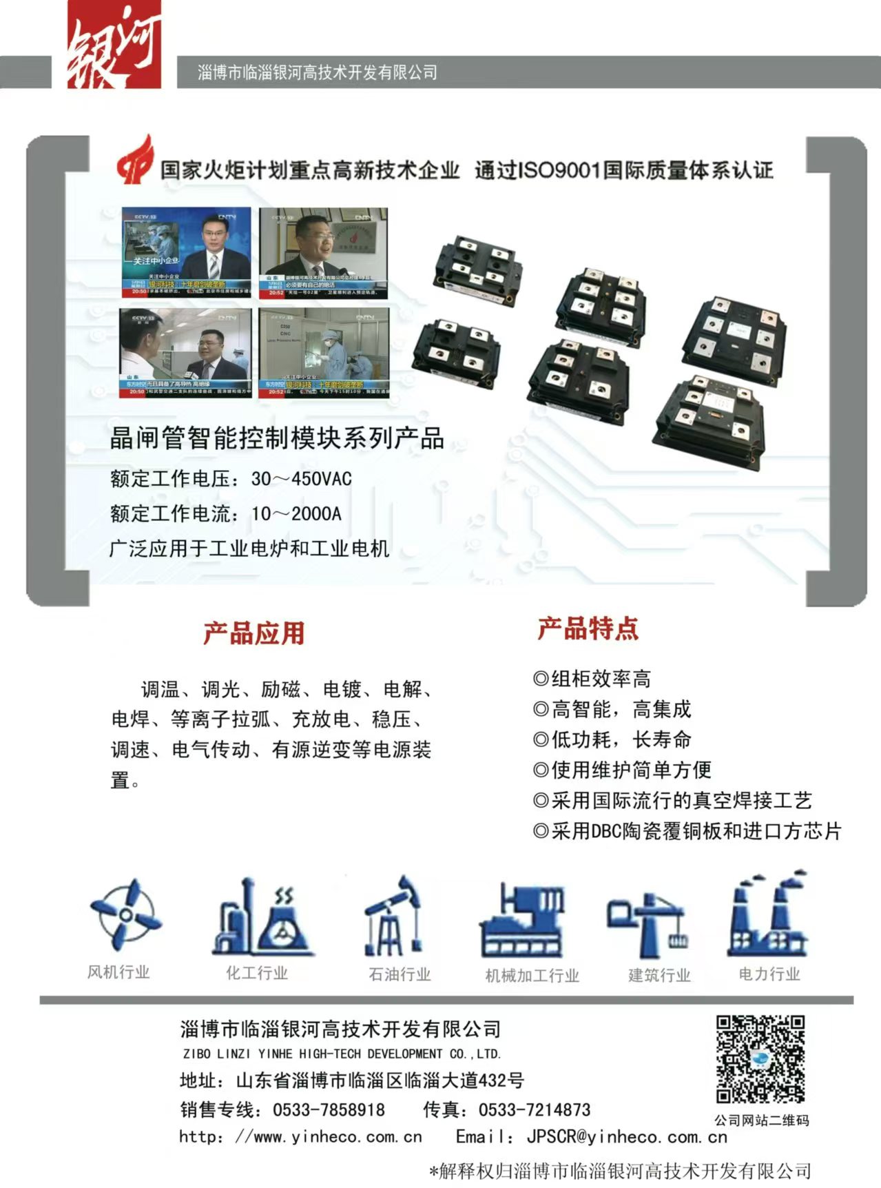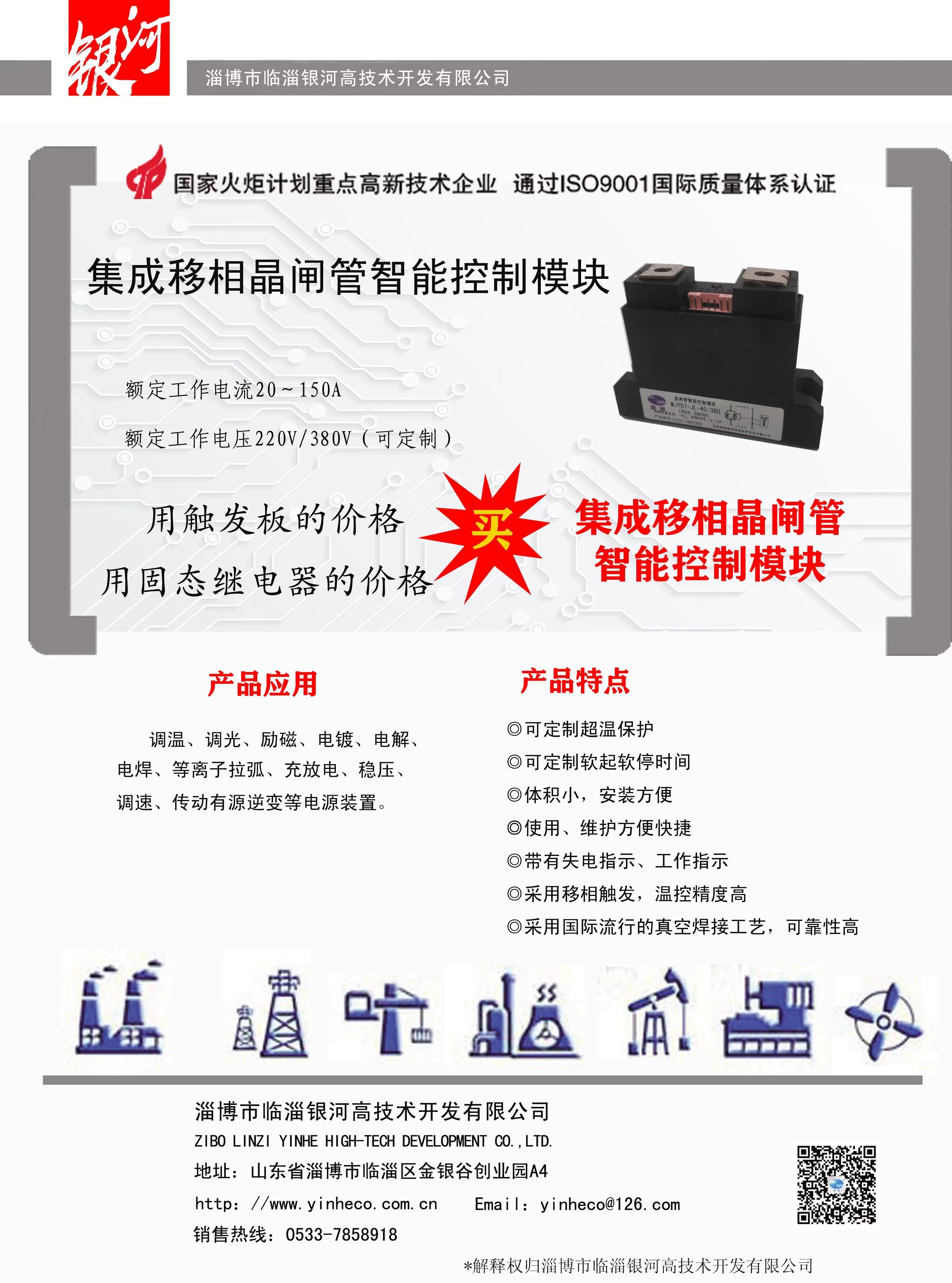 主要產(chǎn)品:DBC陶瓷覆銅板(190.5×138mm的母板或蝕刻線路的單、雙面成型零件)、大功率LED陶瓷覆銅散熱基板、聚光太陽能光伏陶瓷覆銅散熱基板、射頻電路用陶瓷覆銅板;晶閘管智能控制模塊、恒流恒壓控制模塊、除鐵器模塊、MTC、MTX、MTG、MDC、MDS、MDQ、SSR(固態(tài)繼電器)、晶閘管移相觸發(fā)控制板、恒流恒壓控制板、雙閉環(huán)直流調(diào)速控制板、蓄電池充放電控制板等;承接各類控制柜(加熱電源控制柜、直流調(diào)速屏、交流或直流電機(jī)軟起動(dòng)控制柜,充電電源控制柜、電鍍或勵(lì)磁電源控制柜等)。